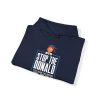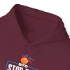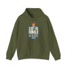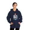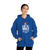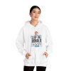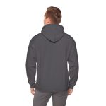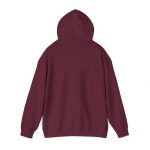 A unisex heavy blend hooded sweatshirt is relaxation itself. The material is a thick blend of cotton and polyester. This makes for a plush, soft feel alongside warmth. It’s also a great surface for printing. There are no side seams. A spacious kangaroo pocket hangs in front. The hood’s drawstring is the same color as the base sweater.